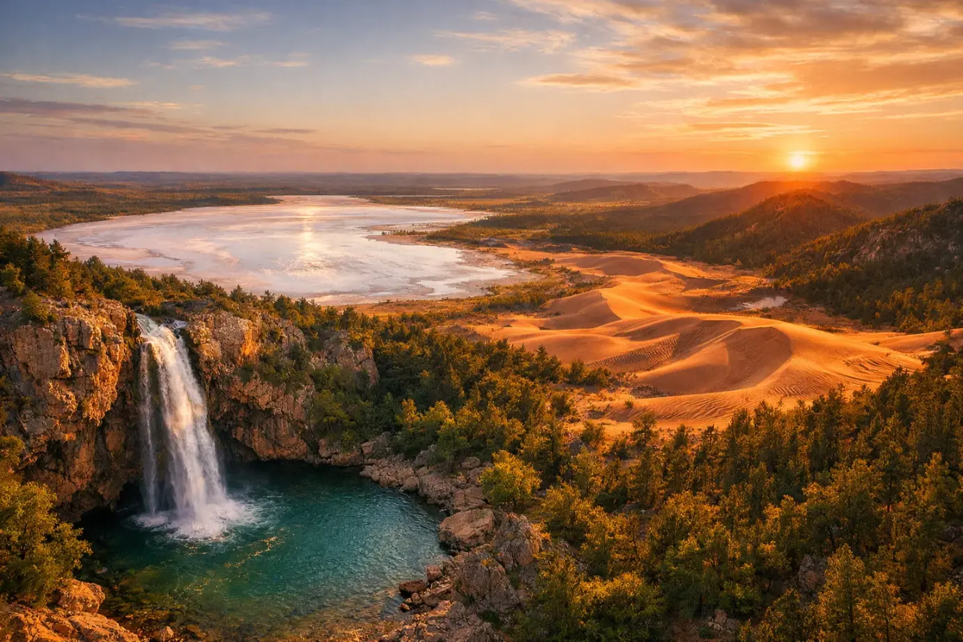 Oklahoma sits in the heart of the country, bounded by six states and crossed by one of the most iconic highways ever built, yet it rarely earns a top spot on anyone’s travel bucket list. That is the state’s greatest advantage and its best-kept secret. While travelers rush toward Nashville, Austin, and Denver, Oklahoma quietly offers towering waterfalls, ancient Native American archaeology, sand dunes that rise 75 feet from the prairie floor, crystal beds that were once the floor of a prehistoric ocean, and a downtown Victorian district that looks unchanged from 1910.